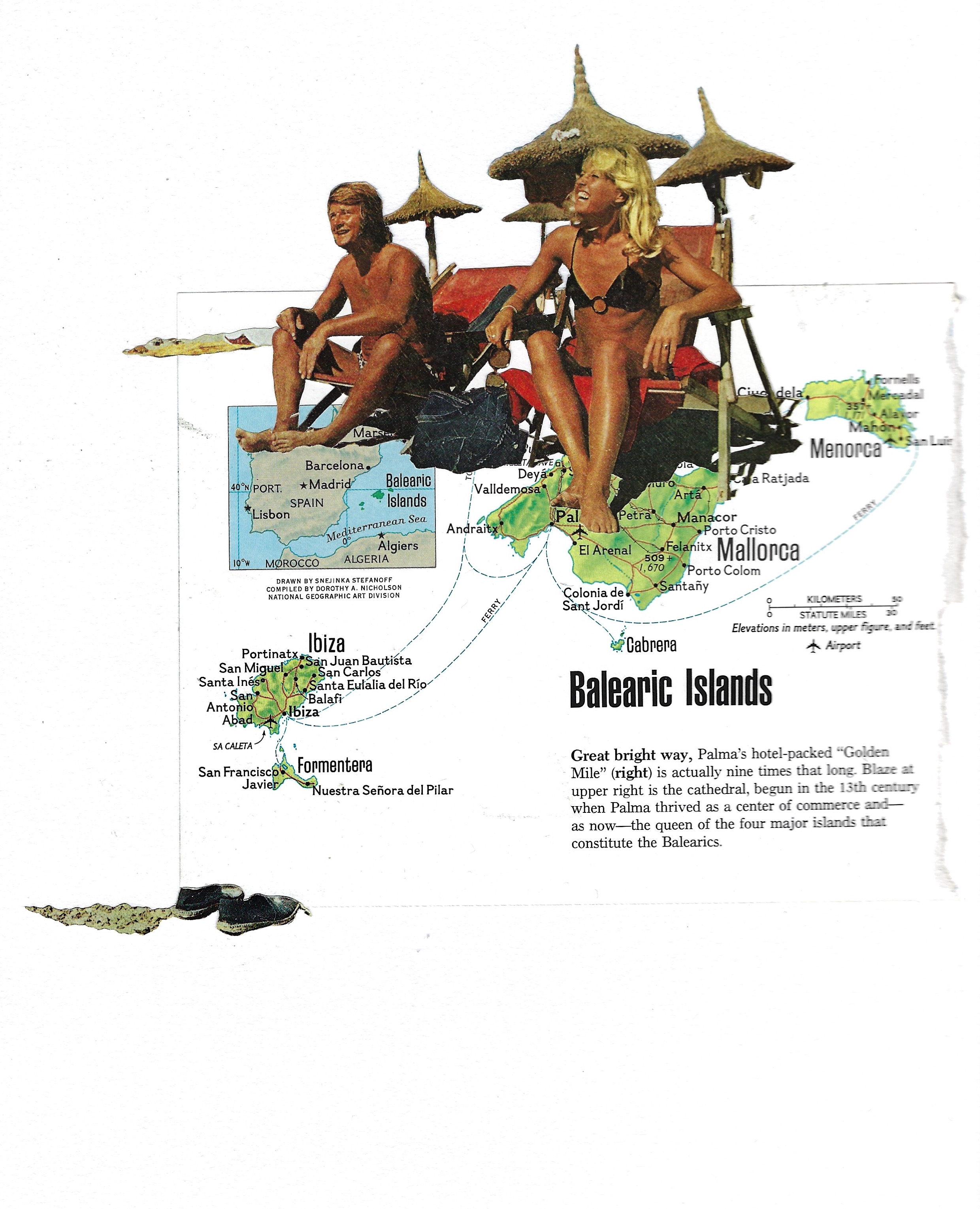 Scott has been interested in the concept of place since the beginning of his exploration in collage. Using source material found in the schools he worked in, he began investigating classic editions of National Geographic magazine from the 1960s. In these pages he discovered quality photography rich in cultural references, alongside beautifully illustrated maps - this inspired a series of works, which spanned a decade.