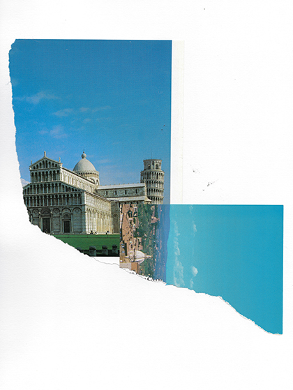 Using the discarded pieces of material, Scott began experimenting with lining up and arranging new compositions gathered from the left over imagery. The classic architecture of Tuscany creates new surreal parallels to the original guide material and allowed for further developments in the recurring theme of “chance” composition.